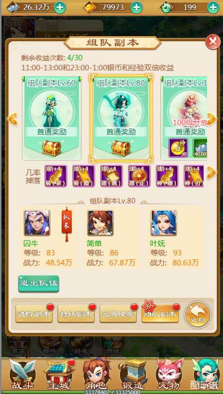 最重要的是,在中午11点到1点和晚上11点到1点之间组队打副本可以获得双倍银两和经验,小编建议把30次的收益机会都集中用在这个时间段以获得最大收益,这么优惠的事情千万不要错过哦~