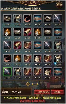 无双任务还有几率获得装备,装备会先存在包裹处,若背包满了则无法再拾取装备了,建议尽快领取哦~vip等级会影响包裹容量。