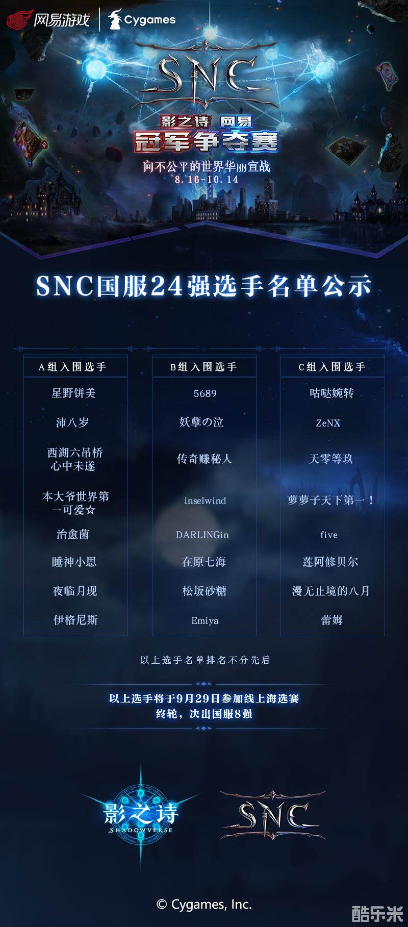 最终,天零等玖、莲阿修贝尔、ZeNX等八位选手获得了最后的8个晋级名额。同时,SNC国服24强也顺利诞生,让我们共同期待他们在接下来比赛中的精彩表现!