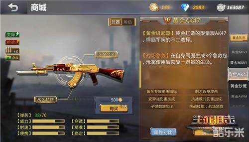 前面讲过,每个黄金武器都会有独有的专属技能,就以黄金AK为例子,它不仅拥有更强的准心回复速度、同时射速快、稳定性强、还具备挑战模式的特殊技能战场急救,各方面都称得上毫无瑕疵。