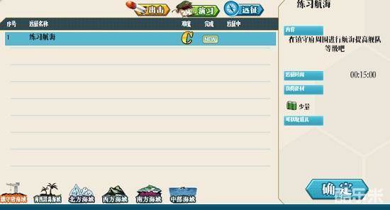 在第二舰队的界面编成后回到母港-出击-远征,就能看到远征列表。