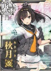 和火力相反,超战舰级的对空加上防空驱逐的舰种加成,对空CI发动率和对空迎击效果都是极好。然而面对搭载超大的敌舰,击坠效果并不稳定的对空CI本身就收益有限,所以即使是在有空母的水雷图,秋月也并不是非常好的选择。只有前期的联合舰队图,因为对驱逐的输出要求很低,可以选择使用秋月辅助对空。