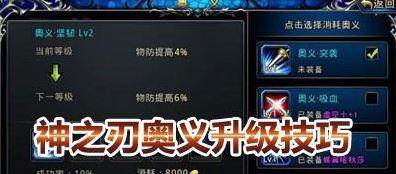 神之刃提高奥义升级成功率攻略。先用1蓝升,基本都是失败,然后上2个蓝去升,如果失败,换事先准备其他要升级的,下面就随小编去看下吧,希望对大家有所帮助。