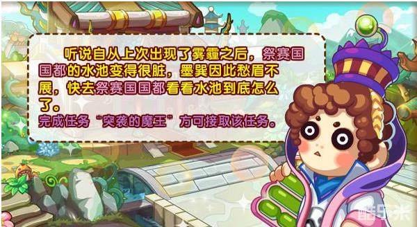 2、到了【祭赛国】找到水池,点击一下水池继续任务。