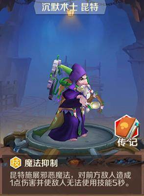 魔法抑制:昆特施展邪恶魔法,对前方敌人造成1点伤害并使敌人无法使用技能5秒。