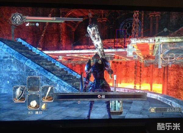 如下图所示,拉动那个机关,就可以直接上去,遇到的第一个是宝箱怪,第二个就是黑骑士大斧。