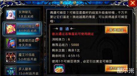 大家在杀敌通关后就有很大几率触发抓捕可姆豆的活动,这个活动并不是具体什么时间段的。而是我们在打副本时不小心发现了可姆豆的藏身地,从而触发了打败可姆豆的有趣活动。可姆豆是大家战宠成长的口粮,只要战宠有足够的可姆豆作为口粮,它就可以不断长大变强。所以可姆豆非常的重要,而参加抓捕可姆豆就可以轻松得到。当我们触发这个活动时,一定要去诱捕它们哦。