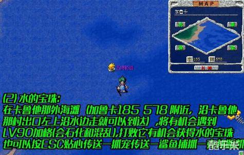 攻击,会与其他鱼系1-9隻一起出现,宠物中溷乱最好先逃再遇敌,以免自己被宠物打飞,打完会有机率得到"水的宝珠"。