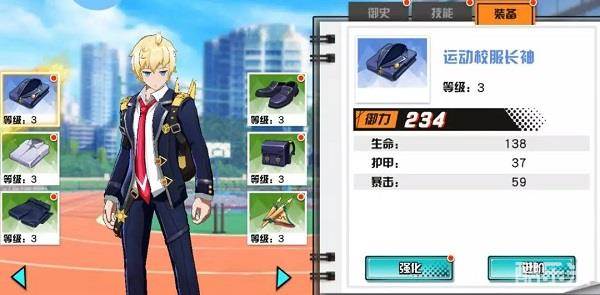 ?点击装备按钮,即可进入装备界面,这里点击左侧装备图标选择想要养成的装备,在右侧可以选择消耗钞票来强化装备或消耗材料提升装备品阶。材料主要通过御史故事普通模式、商店购买获得。