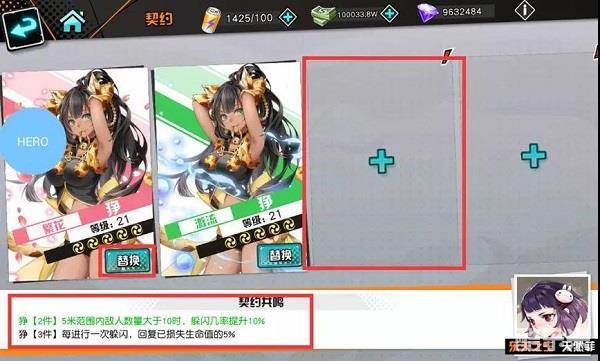 在这里直接点击没有契约的位置即可装备契约,也可点击替换按钮替换已有契约。装备同一种类契约时可以发动契约共鸣效果。