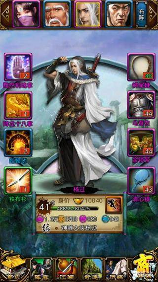 初接触《指掌江湖》就被游戏题材所吸引,一个个遗忘的名字又呈现在我眼前,回忆起读书时低头看金庸小说的时候。如果能把各主角英雄都编制一队快意恩仇,乐栽。