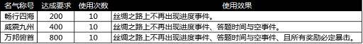 2.名气称号效果有次数限制,每在丝绸之路上使用一次则减少一次;