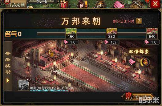 活动内容:活动期间,玩家通过发起请柬获得不同国家的进贡来获得不同数量的丝绸、丝绸锦囊或招商令奖励,以及提升一定的名气,当名气达到指定值时,获得名气称号。