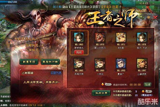 战斗通过电脑控制自动完成,让双方的军团堂堂正正的一决高下。每周根据排名发放奖励。