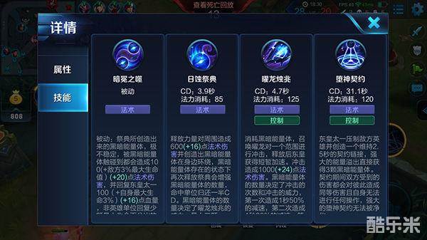 被动-暗冕之噬:被动技能是东皇太一的核心技能,正是因为有了被动,我们才有着很强的回复能力,而且被动在回复生命的同时还附带着高额的生命百分比伤害,这让我们在团战中既可以抗住更多的伤害也能打出不错的输出,但是在参团之前最好保证自己有三个黑暗能量体,不然进团是打不出应有的效果的。