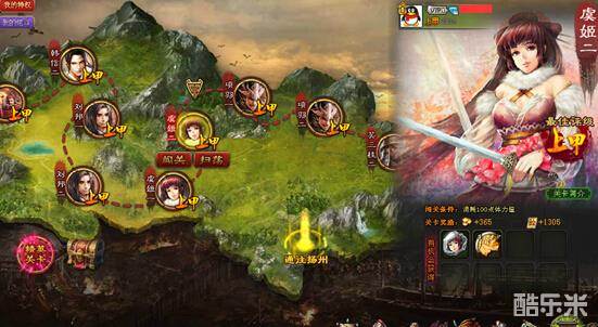 普通关卡分为徐州、扬州、益州、中州、青州、幽州、漠北、西域、吐蕃、北疆和于阗11个大地图,只有通关了前面的地图才能前往下一个地图,每个地图中只有通关了前面的关卡才能前往下一个关卡。