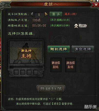普通关卡可以消耗体力进行闯关,玩家需要选择一个主将,2个副将进行战斗。闯关途中,只有主将可以由自己操作,副将将由电脑操纵,获胜可以获得英雄碎片和辅印碎片。