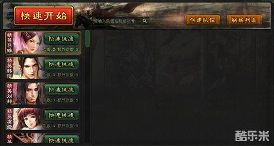 点击组队挑战,可在组队界面可以选择加入其他玩家的队伍或者自己创建队伍,共同闯关。