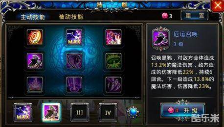 召唤师前期最实用的两个技能就是厄运和恐惧召唤,恐惧召唤有很高的群体伤害效果,是其最主要的输出方式。而厄运则较偏于防守,释放后敌方所有部队伤害将将会大大降低,持续6个回合。其实,个人觉得这个技能还是非常给力的。大家不要看减少的伤害只有2成,但是5个敌人加起来的伤害就有百分百了。