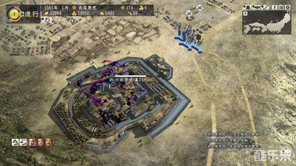被包围据点的场景,被包围之后就会出现士气减少,等到零之后就会被攻陷了,除了据点保卫之后,强行攻击也能造成耐久和敌军兵力。