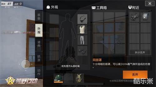 小小的面罩现在也有了特定的作用,各位玩家在搜寻物资的时候,可不要忽略了它的存在!只要拥有了面罩,在对手用毒气弹攻楼或者是用毒气弹对峙的时候,都能增加自己的胜算,20%的减伤有时就是胜负的关键哦!