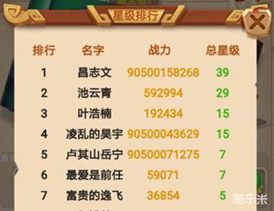3.挖宝有星级排行榜,根据总星级综合进行排行