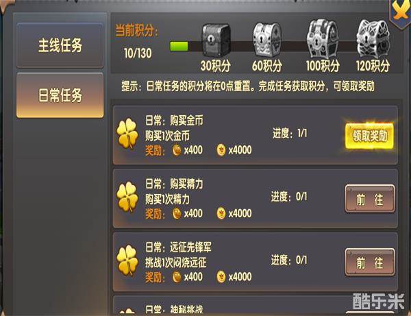 任务分为主线任务和日常任务,日常任务的积分会在每日的0点重置。