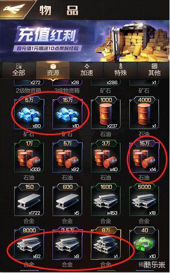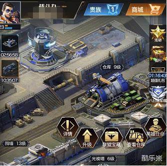 我们没有更多的资源加成,就必须细心的去分配我们的资源,这也是我们需要注意的!也是我们和中V和高V不同的路线,仓库的每升1级只有5000资源的存储量提升,所以仓库的设定会小编绝对并不是那么需要提升高等级的仓库来进行存储资源,因为游戏里的资源都是一次性消耗的(除军队的油量消耗),所以每次缺少资源之前,都可以定向的去获取想要的资源(抢劫和采集或者资源道具),因为建筑矿要的多,兵种是油要的多些,所以在需要升级建筑的时候就提前去弄矿,需要生产兵种的时候就提前去弄油,毕竟5级一种兵出一次就要20W的油9小时的时长,也足够我们去准备了。