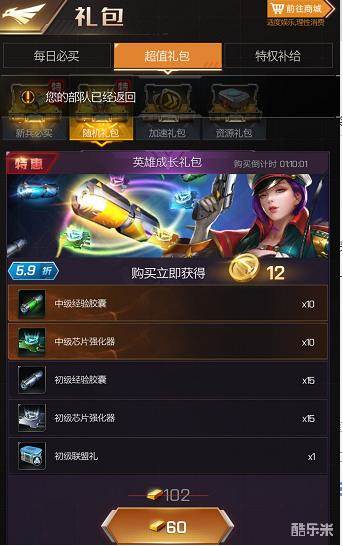 其中新手礼包种的英雄招募礼包是重点推荐,因为前期这两个组合确实可以有效提升战力,芯片礼包中期买即可,因为芯片的等级和插口数量会受星级制约,所以前期提升英雄的星级等级就变得非常重要,其他的如加速,新起之秀的礼包种类,个人觉得还是没有带资源的礼包更合适些,在前期资源充足的情况下,压根就不太需要资源,16级以后需要资源了,可以在资源礼包购买,更针对需求。