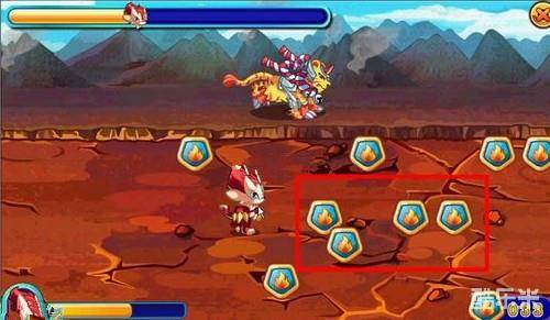 火柱来袭之前,是有预兆的哦!出现了如图所示的标记时,卡布们记得不要让小烈移动到这些位置上就不会受攻击啦!