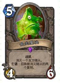 魔块的存在是为了加强这套牌的中期赖场能力以及加强套牌的灵活性,中期赖场能力即是指魔块亡语带着2只吃掉的随从,对手解也不是不解也不是,而灵活性则是指魔块可以指定目标吃,打快攻可以吃奇利亚斯,打控制卡组可以吃质量高一点的随从,分裂出2个,增大场面压力。