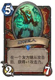 5费2/7友方随从攻击后可以加1攻击力,具有成长的属性,但是一直以来没几个战士带,而我们带的原因就是因为我们有突袭体系,试想,这个随从只要涨2攻就不亏了对吧,配合突袭的原本的场面,基本当回合就可以变成4/7,而7血不好解,意味着下回合只要其他随从先攻击,他就可以变成更强,并且活的越久威胁越大,同样上限极高,只是在大劣势的时候有点吃力,因为场面肯定没随从,靠额外突袭随从仅仅能变成3/7有点小亏。