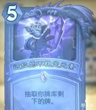 其次便是盗贼的迈拉的不稳定元素,考虑到如今奇数贼的火热,带这张法术橙卡算得上最后一搏,尽管会让自己在几回合内疲劳死,但只要在2-3回合解决战斗那就是胜利。理论上说起这张法术橙卡可以一下子过10张牌,这对于没有过牌能力的奇数贼来讲肯定是很赚的。除此之外,很多偏娱乐的盗贼卡组也会带上这张法术橙卡。