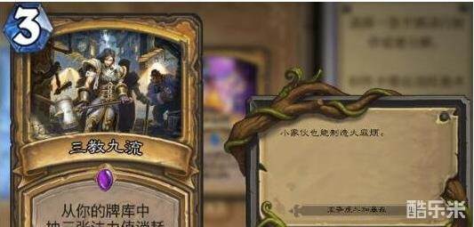 接着我们就要聊骑士的法术,由于战斗号角的巅峰期已经过去,咱就不聊了。而一张已经退环境的卡【三教九流】却值得一说,在曾经骑士打快攻的年代,3费过3张1费的随从曾一度让鱼人套风靡全场,当然,也只有在这种特殊的构筑中,三教九流才是加入卡组中的一个好选择。