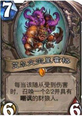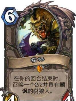 也是一张JJC牌,效果没有本质区别,不弱,能用但绝对不能用强形容。比起经典霍格更能打。而且不得不让人想起本版本的机械卡6费2/5安保巡游者(受到伤害招2/3嘲讽),效果很像,但是625能够被磁力buff,还能配合英雄卡砰砰博士的突袭,这是灾星霍格大爷所没有的。