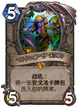 先说安戈洛版本的“开拓者”逐星,中速、控制卡组都可以带的一张质量不错的橙卡,5费下不亏节奏,挖宝的奖励也不菲:2费补充5张手牌(保底一张紫卡)。并且安戈洛版本有大量优质卡,所以“开拓者”伊莉斯合了不亏,不合也无所谓,毕竟安戈洛也陪我们走了2个年头了。