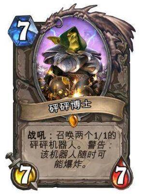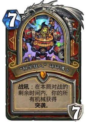 战士的英雄卡,梗就诞生了好几个:登场召唤7甲;没有战士会拒绝2费7甲;激光笔照眼睛(娱乐圈梗)。更多战士会选择英雄卡,而不是DK,因为砰砰博士这张砰砰计划的头号主角真的很强。