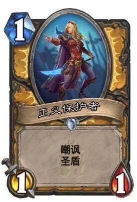 1费 1-1身材不佳。圣盾嘲讽,双重属性看似一般,仅比银色随从多个嘲讽,但同时圣盾嘲讽也相当于没有吸血和自走炮和没有亡语的佛丁,其但个一费随从或许可以吃两个攻击频率,例如挨奥金斧两刀?有时能救命。这张卡成为骑士前期节奏神卡!
