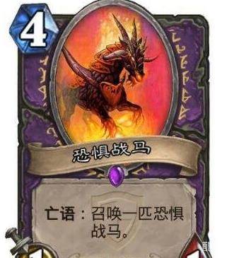 恐惧战马:亡语,召唤一个恐惧战马。还记得当年一套以恐惧战马为核心的黑科技卡组:万马奔腾术吗?这张卡看着很厉害有没有?