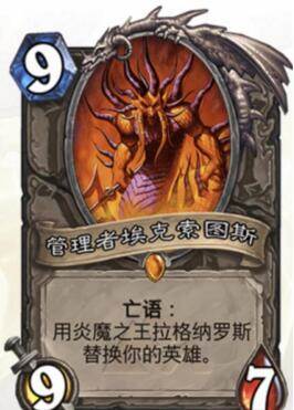 管理者可以说是让人又爱又恨的橙卡了,虽说大家当初都不爱带这张卡,费用过于高,而有时候就因为不小心召唤出来而被对手花式斩杀。但是不可否认的是它带来的炎魔之王的英雄技能可以说是最强也不为过了,二费打八点伤害,等于是四个老猎人的英雄技能叠加到了一起,只要你的欧气足够,随随便便就能甩到对手的脸上,而不用担心有七个守门员,花式斩杀,还要看这个“大火球”!