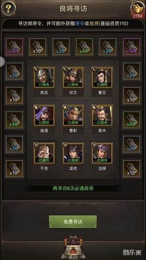 游戏内,当各位主公等级达到88级后便能进行武将寻访。每隔24小时还可免费享受一次武将寻访哦~寻访可是你获得将令和良将的绝好去处,千万别错过!