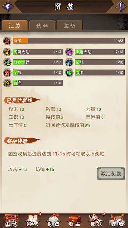 另外,图鉴收集进度达到一定的数量,还会触发相应的奖励。激活奖励会增加魔师的战斗属性。