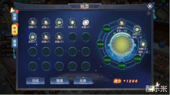点击仙器界面左侧的“器魂”与“猎魂”分页即可点击进入相应的功能界面