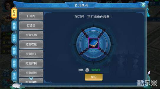 A、打造:学习打造技能后可以打造角色装备