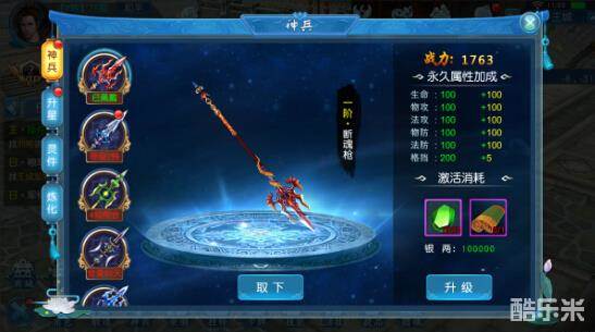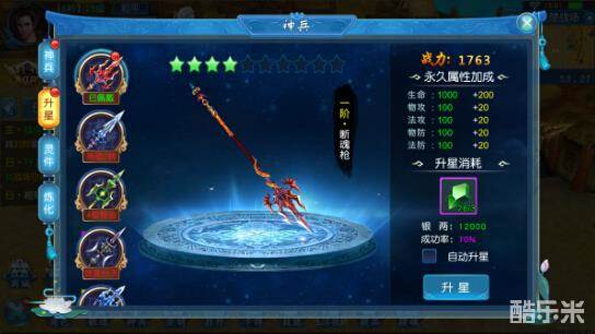4、神兵升星:消耗神兵升星石级银两对神兵进行升星,提升神兵属性