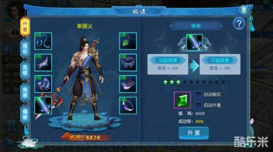 1、装备升星:消耗升星石及银两对装备进行升星,提升装备属性!