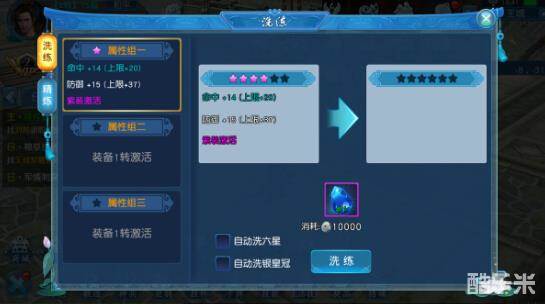 5、洗练:使用洗练石随机更换属性组属性种类及数值