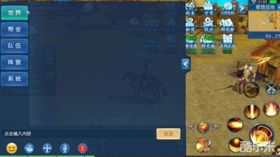 8、聊天界面包含世界频道、帮会频道、队伍频道、阵营频道以及系统频道
