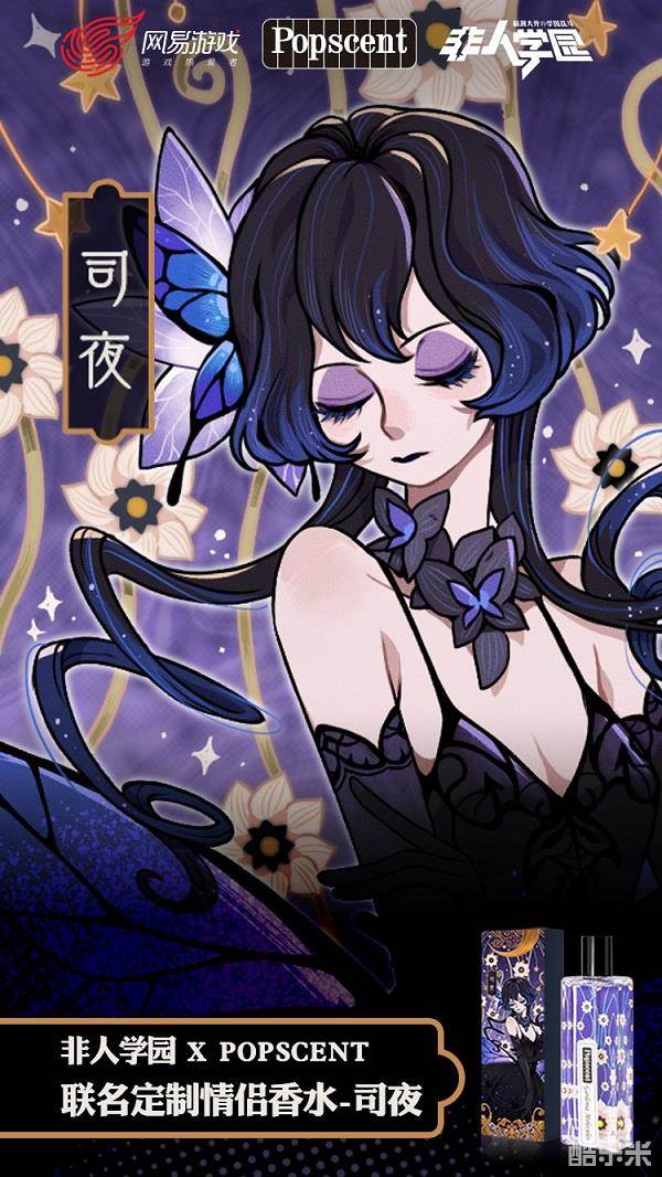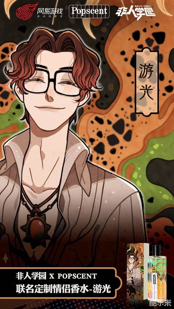 “游光&司夜”作为《非人学园》的情侣代表,他们坚贞的爱情让人格外动容。随着二人组队登场,撒落一大把狗粮,国产香水品牌POPSCENT更一眼相中他们,将他们选为情侣香水代言人。在POPSCENT推出的全新波普主题系列香水中,“守夜人”司夜化身富有魔力的栀子清香,包装上的小白花朵朵绽放于紫蓝色背景,诉说不为人知的夜之魔咒。男神游光则代表温暖的柑橘香型,有别于常规的酸甜,混合了青柠檬、西柚、豆蔻,带着点西域香料的魅惑风,让原始的气息轮回变异升级。