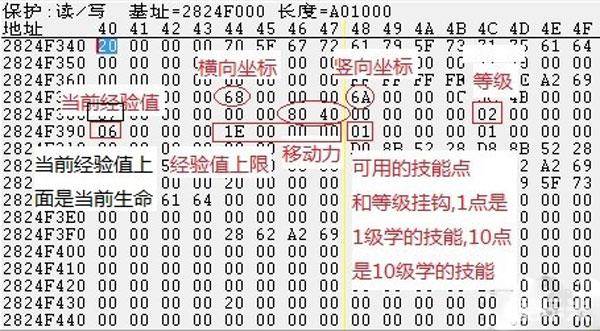 首先我们要下一个内存修改器,我用的是游戏修改工具Cheat Engine,然后就可以去搜索经验追,最后得到的是两个数值,右键就可以查看内存了,这是内存里面的各种属性,非常清楚明了的。